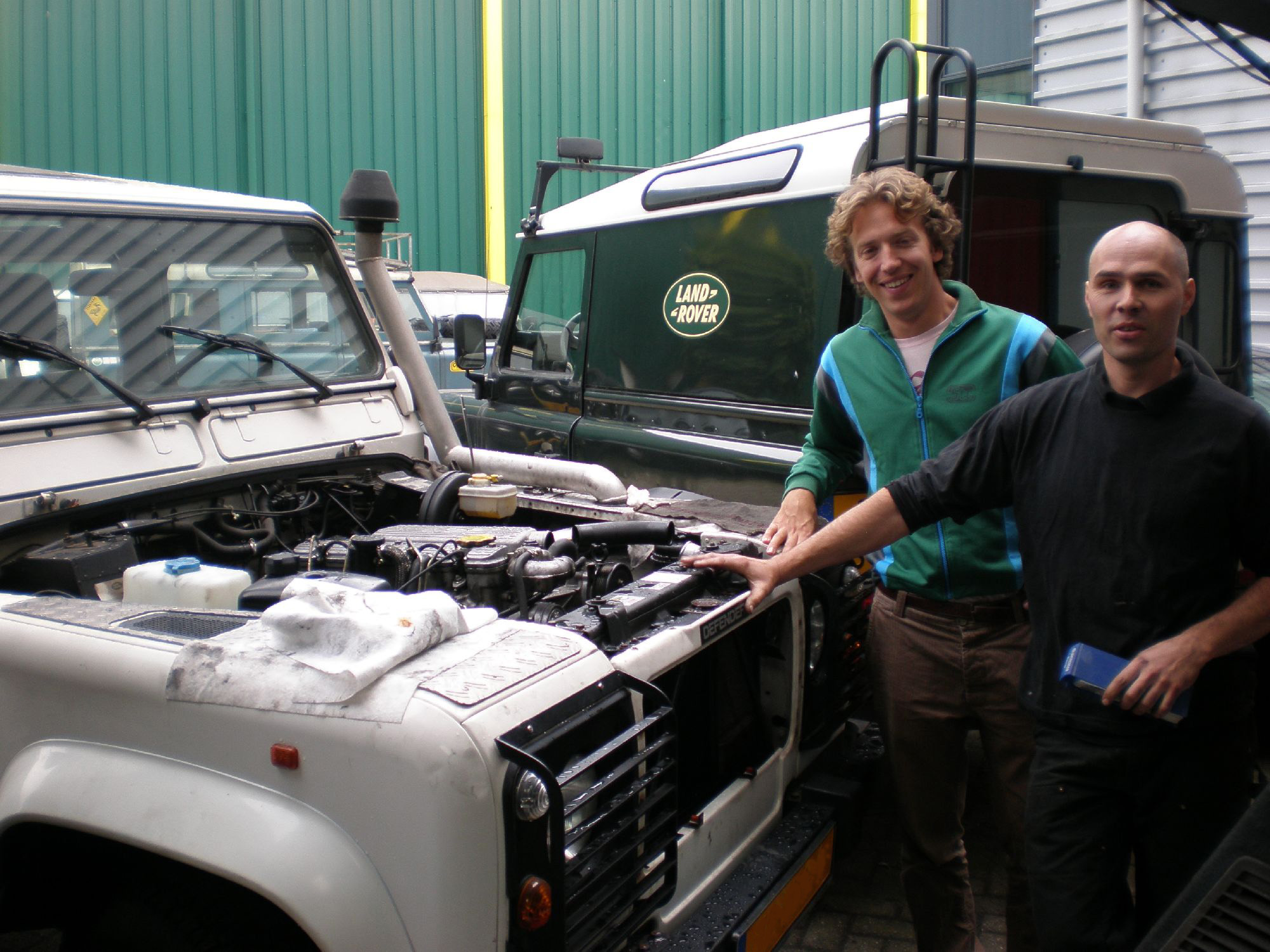 In de garage met Peter bij 4x4 Eemland. --- Working at the car with Peter from 4x4 Eemland.