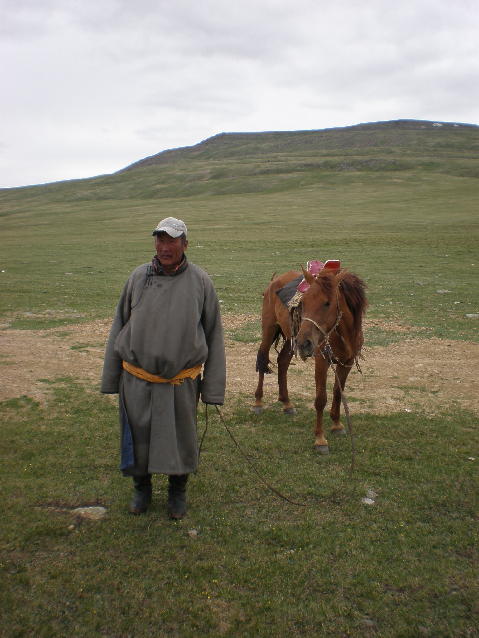 Een Mongoolse herder met zijn trouwe vriend. --- A mongolian shephers with his companion.