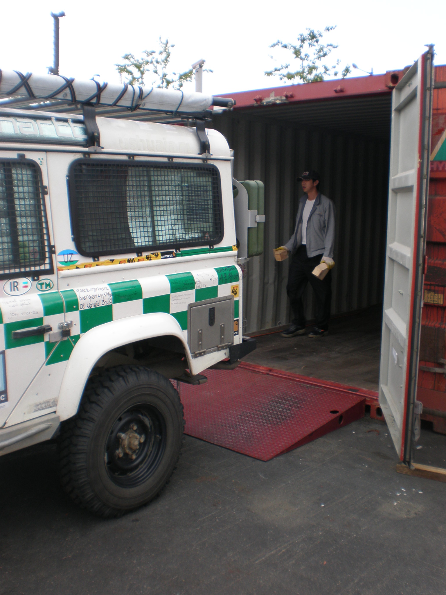 Het was passen en meten maar de auto paste echt perfect in de container. --- It was a tight fix.