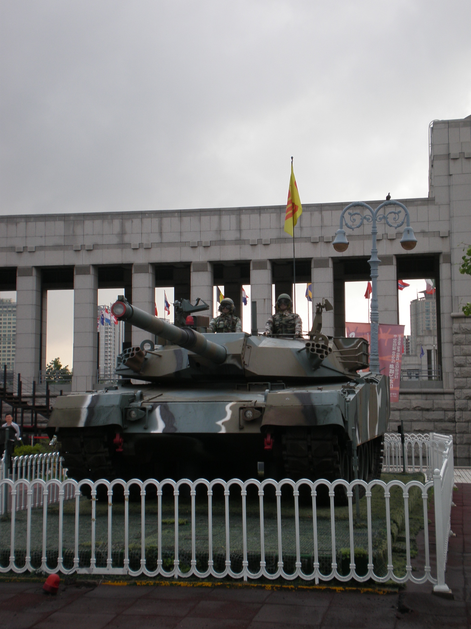 Een van de vele tanks die rond het War museum zijn opgesteld. Hier zelfs met nep-Koreanen voor het sfeerbeeld. --- One of many army tanks situated at the war museum. In this case even with fake Koreans in it.