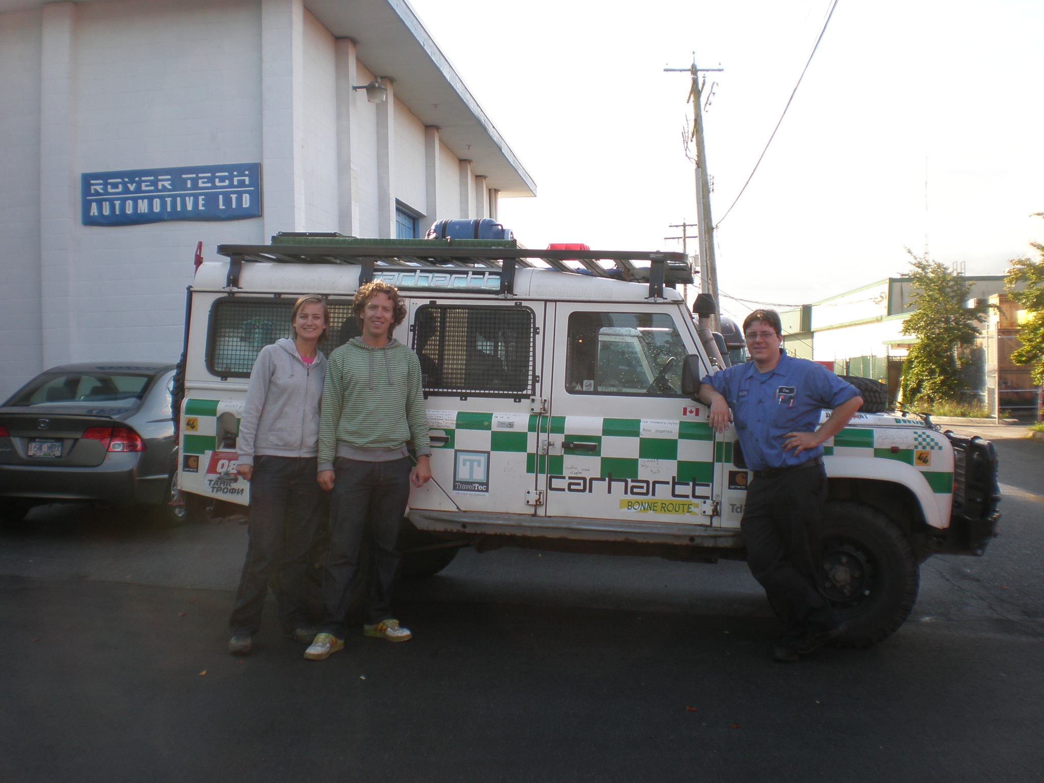 Bij de Rovertech garage, we voelden ons er al behoorlijk thuis na 3 dagen. --- At the Rovertech garage. After three days we felt at home there