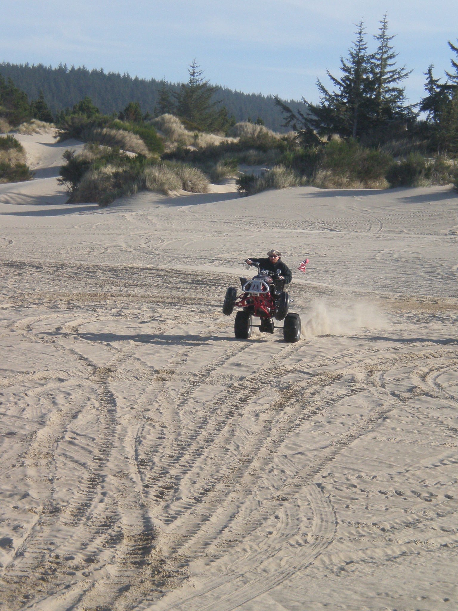 Onze gastheer Wayne vertoont zijn kunsten op de quad --- Our host Wayne shows his tricks on the quad bike