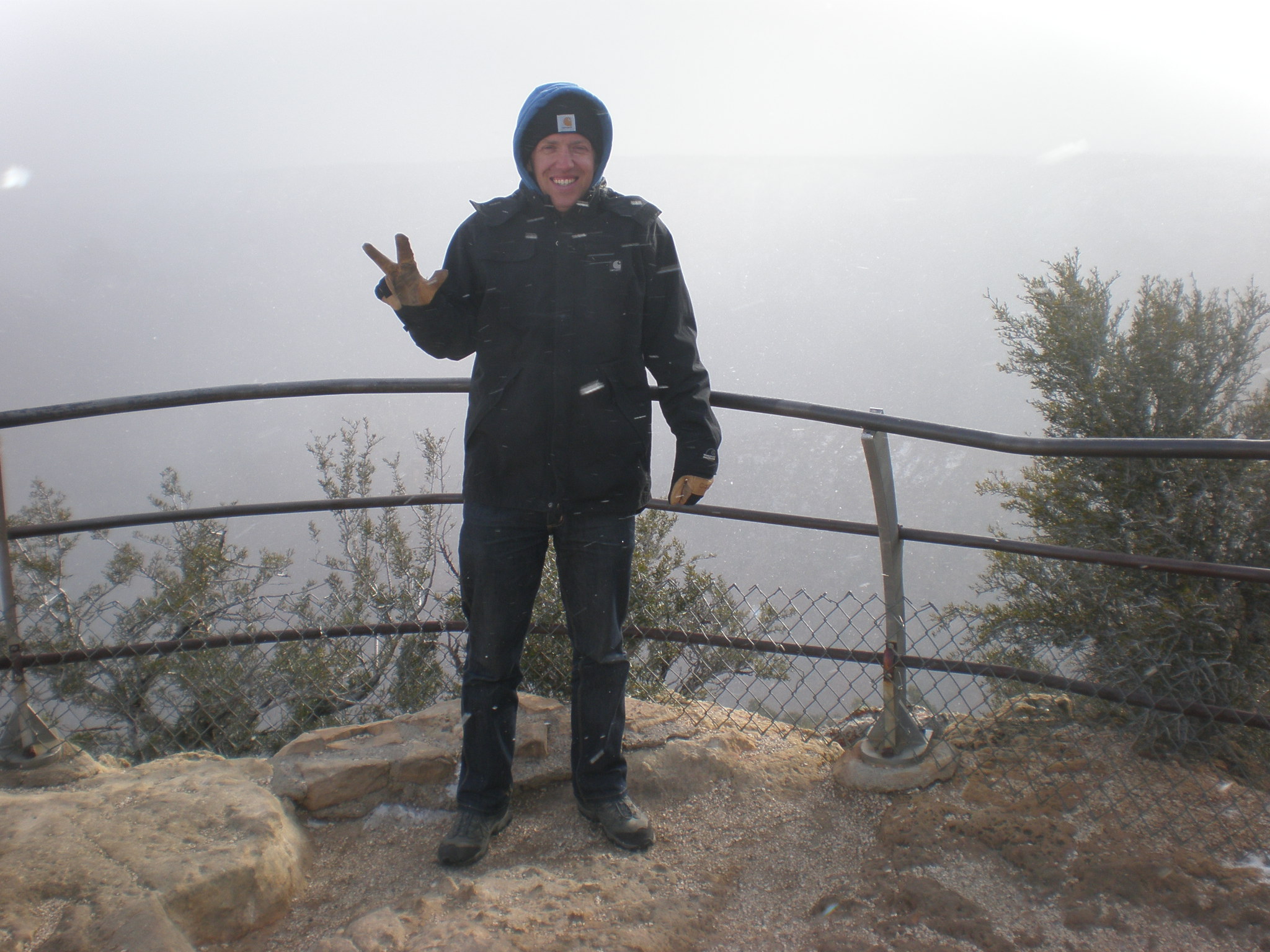 Net als ons bezoek aan de Macchu Picchu viel ons bezoek aan de Grand Canyon behoorlijk in de mist. --- LIke our visit to the Macchu Picchu, our memory of the Grand Canyon will be a little foggy.