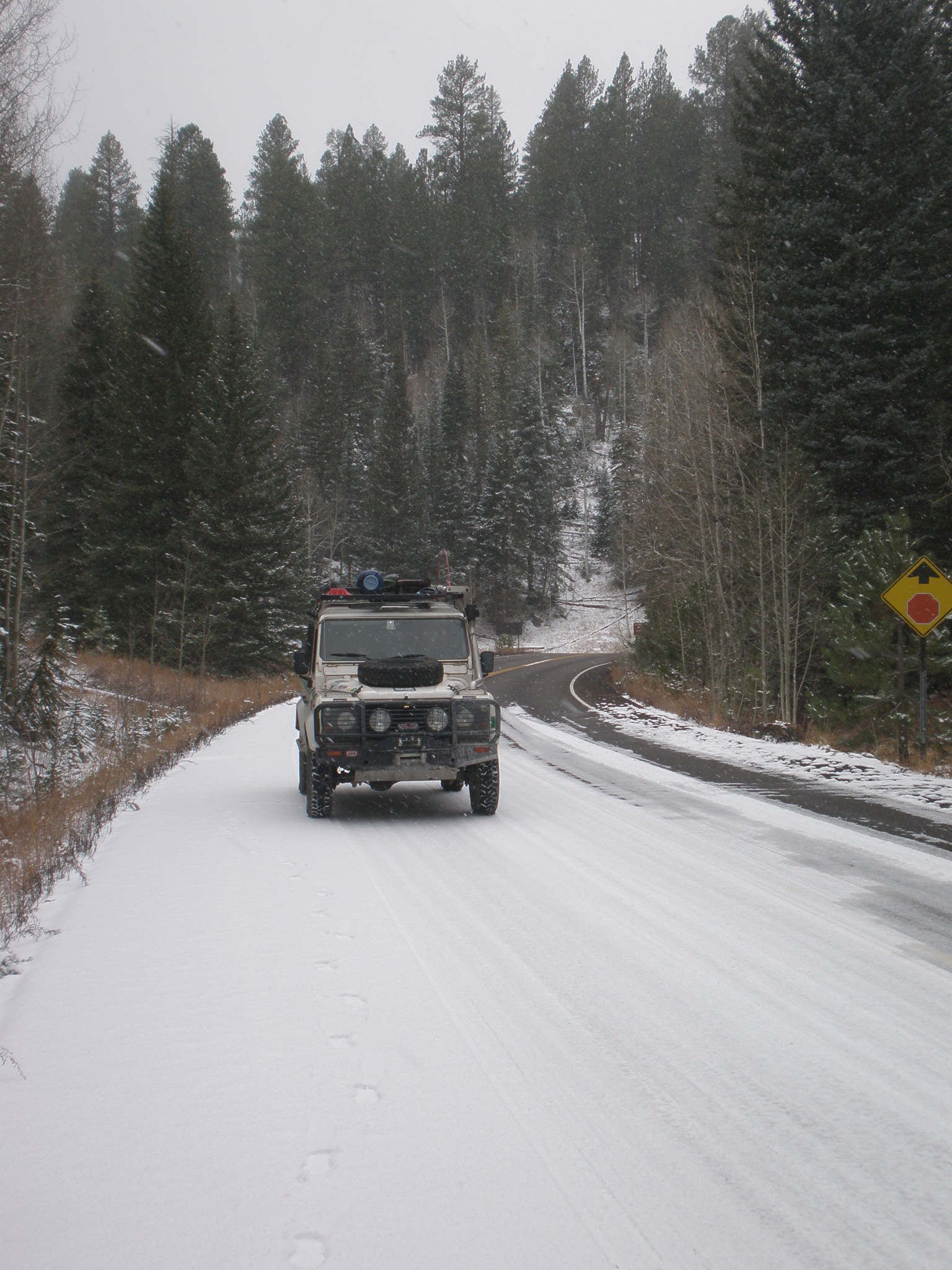Door de sneeuw naar Grand Canyon. --- Driving inthe snow to Grand Canyon.