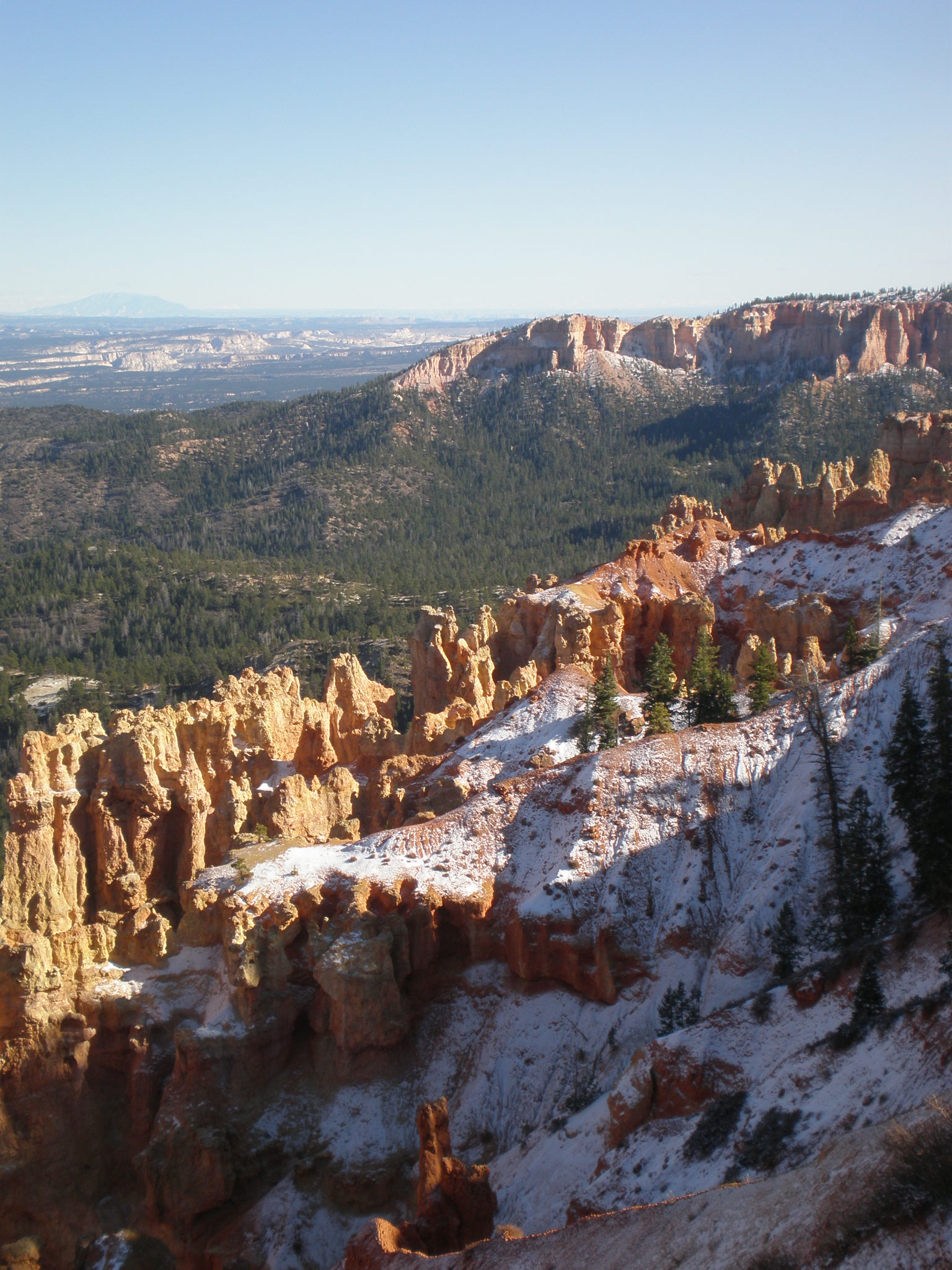 Brice met sneeuw en skibroeken. Helaas geen skiliften... --- Brice with snow, but no ski lifts...