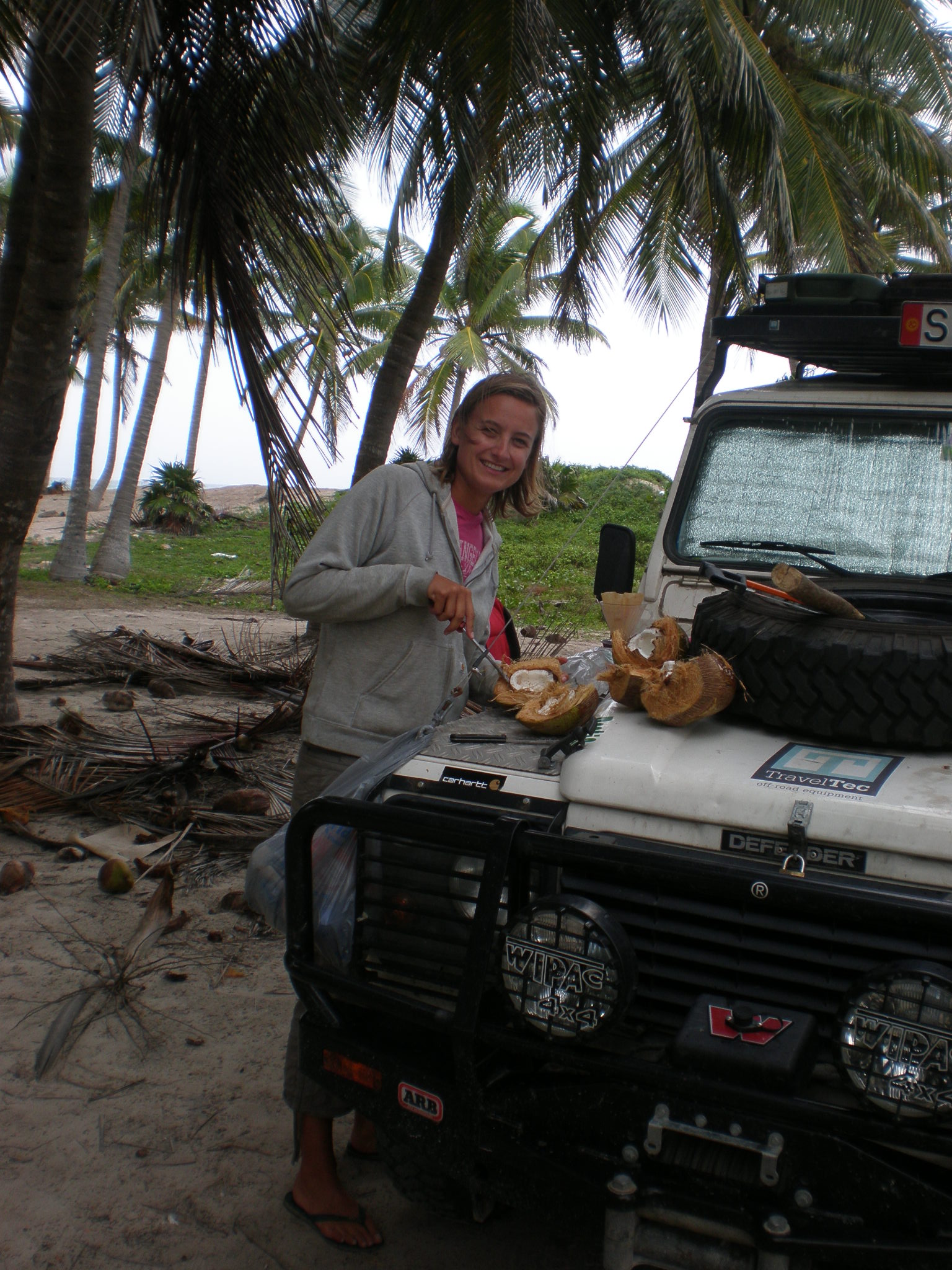 Een van de uitdagingen van kamperen op het stand: hoe zorg ik dat er geen kokosnoot op mij valt... --- One of the challenges of camping in the tropics: how do I avoid the falling coconuts...