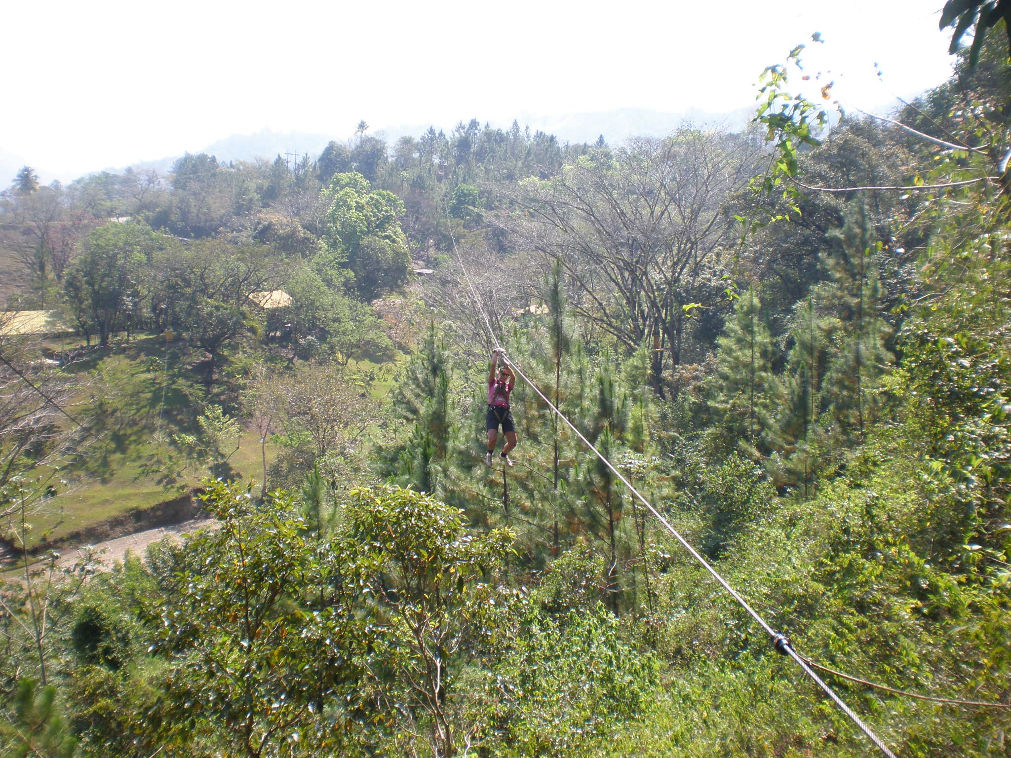 Zip-linen boven de camping in Languin. --- Zip-lining above the campsite in Languin.