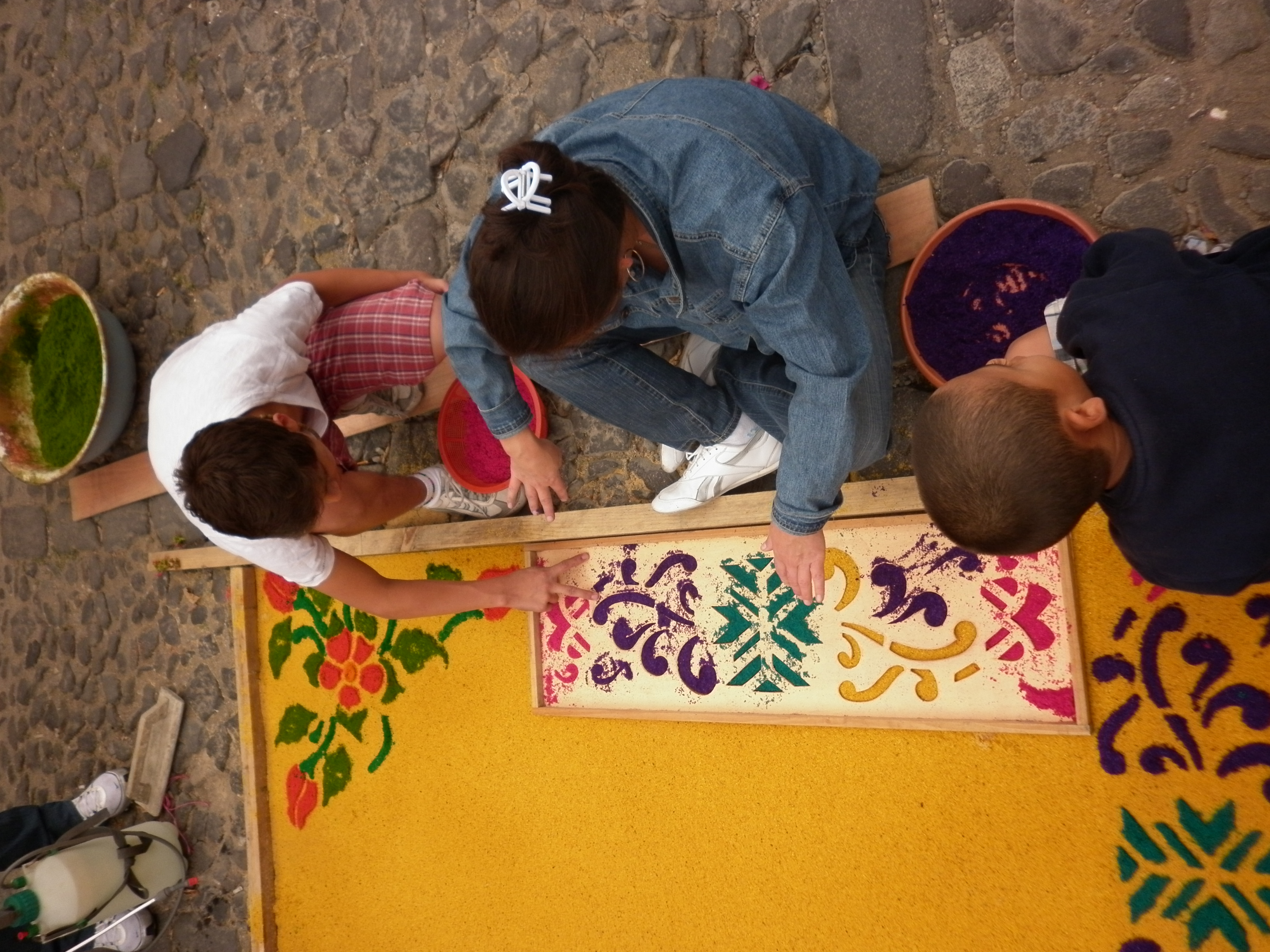 Het maken van de tapijten is een echte familieaangelegenheid. --- The whole family is involved in making the carpets.