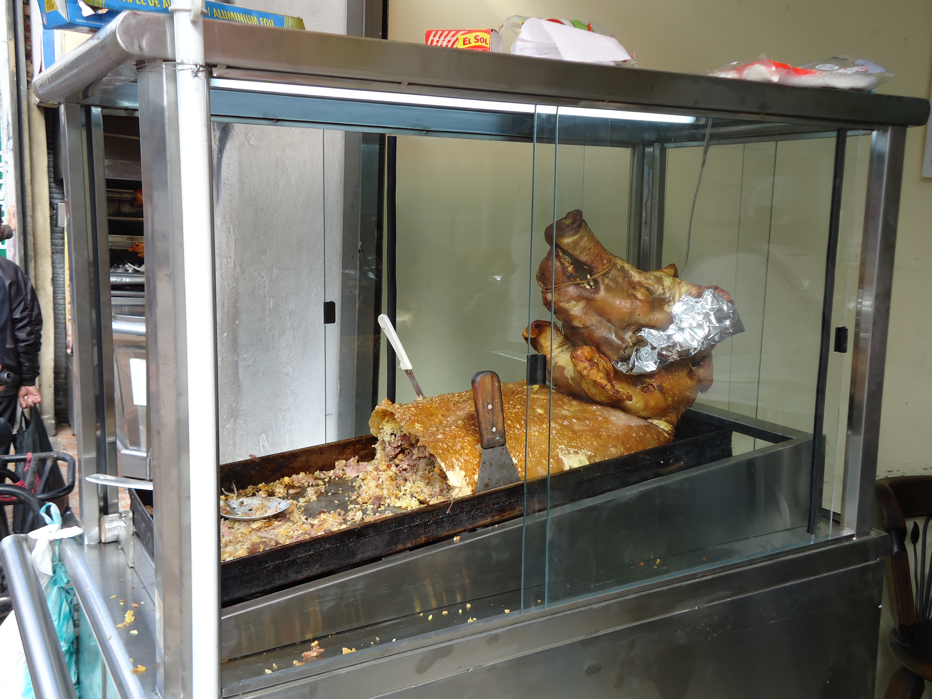 Een lokale delicatesse, we twijfelen nog of we dit willen proberen. --- A local delicacy, we don't know yet whether we want to try it.
