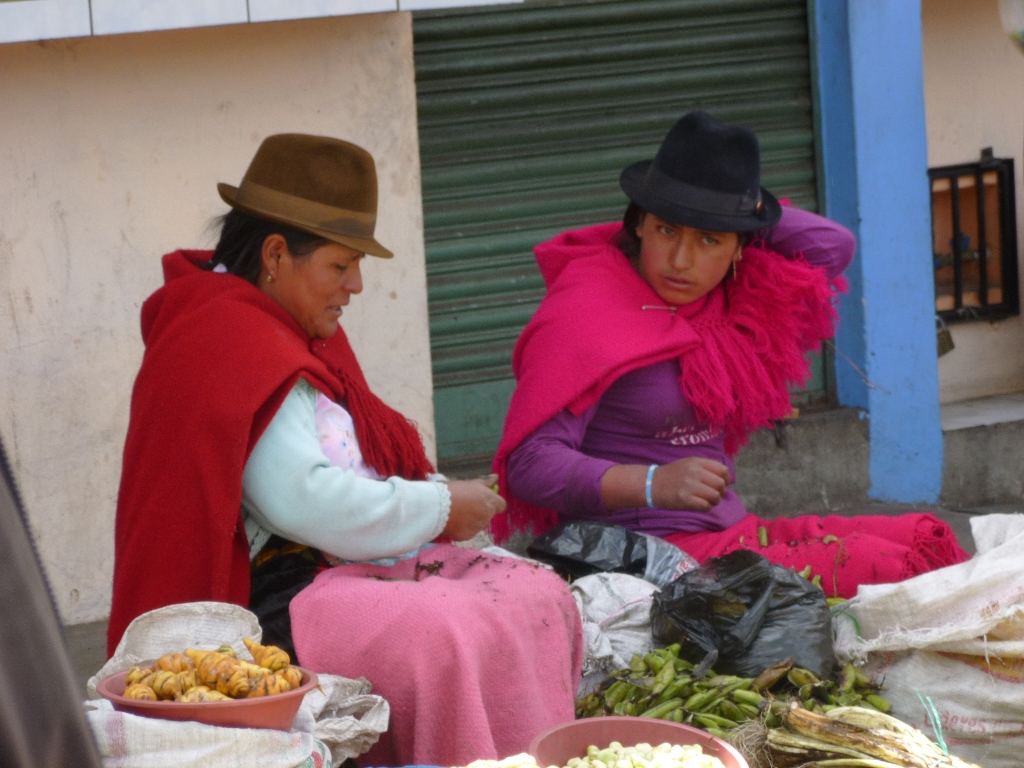 Kleurrijk geklede vrouwen op de markt. --- Colourfull women at the market.