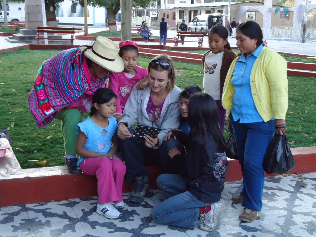 Anouk laat de foto's van thuis zien, en alle meisjes die ervan dromen ooit hun dorp te verlaten, hangen aan haar lippen. --- Anouk is showing pictures of the Netherlands. The girl who are dreaming to leave their little town wanna know everything about it.