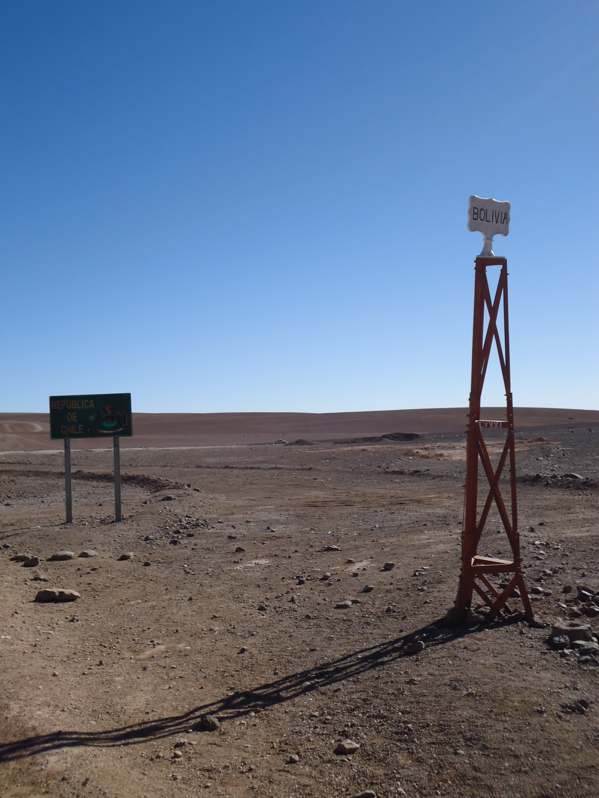Grenspaal Bolivia Chili. --- Borderpost Bolivia Chili.