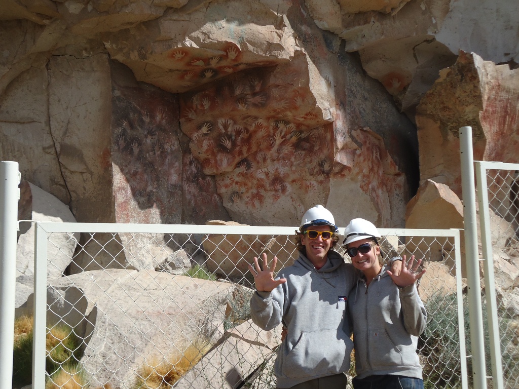 Vooral linkerhandafdrukken bij Cueva de las Manos. --- Mostly left hand imprints at the Cueva the las Manos.