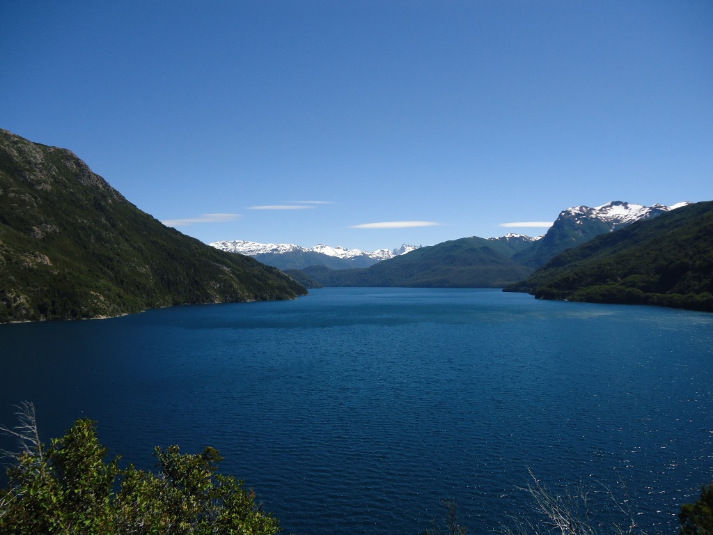 Het uitzicht vanaf onze gratis kampeerplek in Nationaal Park Los Alerces. --- The view from our free campsite in National Park Los Alerces.