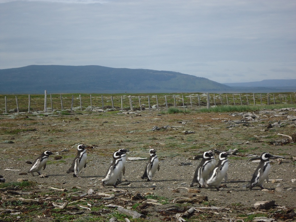 In pinguinpas naar zee. --- Pinguins marching towards the sea.