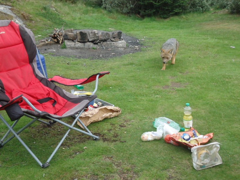 Vos aast op onze hamburgers in Tierra del Fuego Nationaal Park! --- Fox aiming for our hamburgers in Tierra del Fuego National Park!