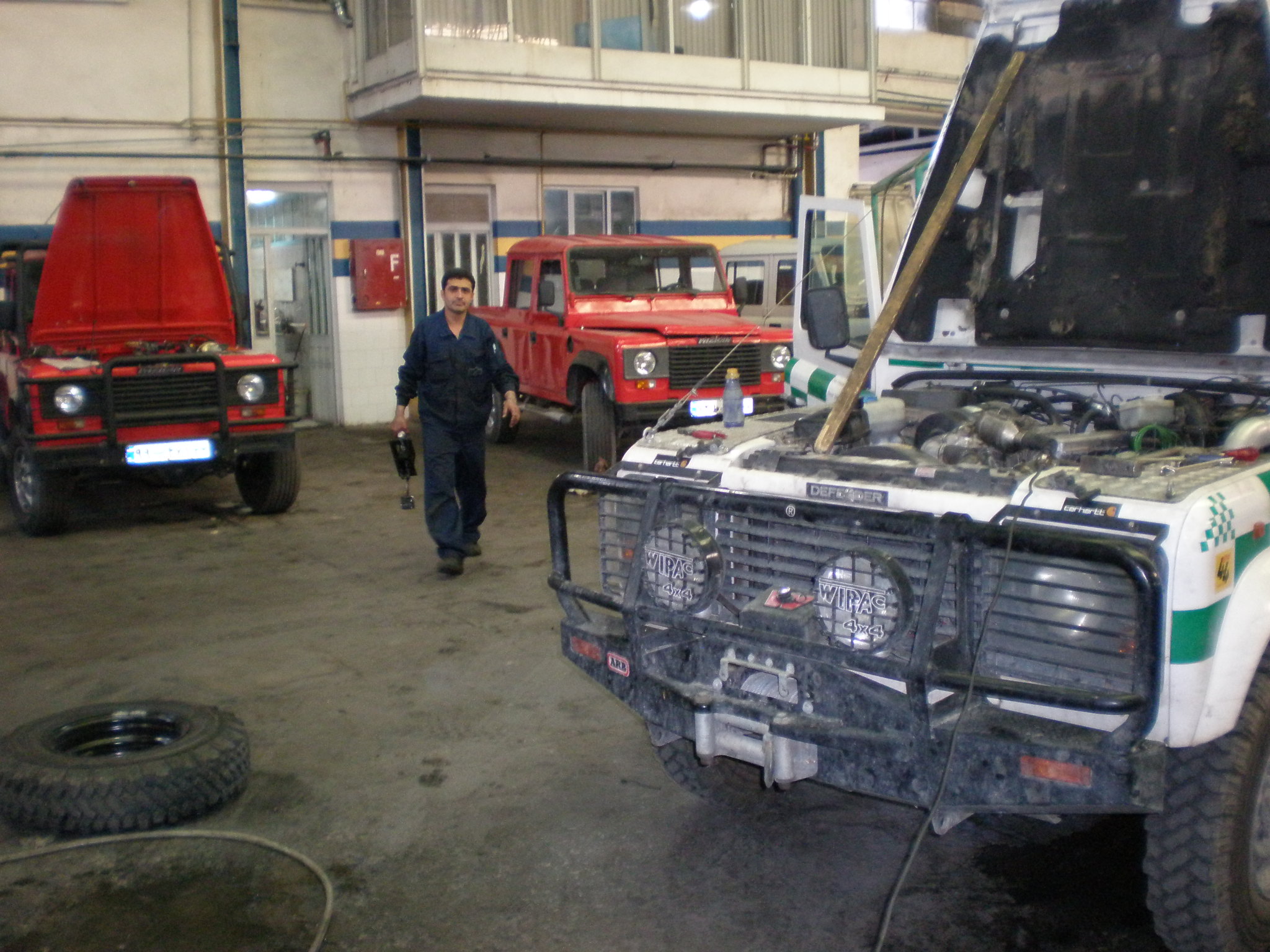 De Iran Rover garage in Teheran, onze loyale sponsor. --- The Iran Rover workshop in Teheran. Another very loyal sponsor of our trip.