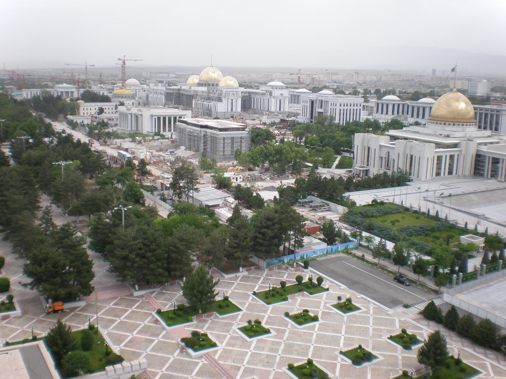 Een overzicht over de marmere jungle van Ashgabat. Zeer onwezelijk. --- A view at the marble jungle of Ashgabat. Very unreal.
