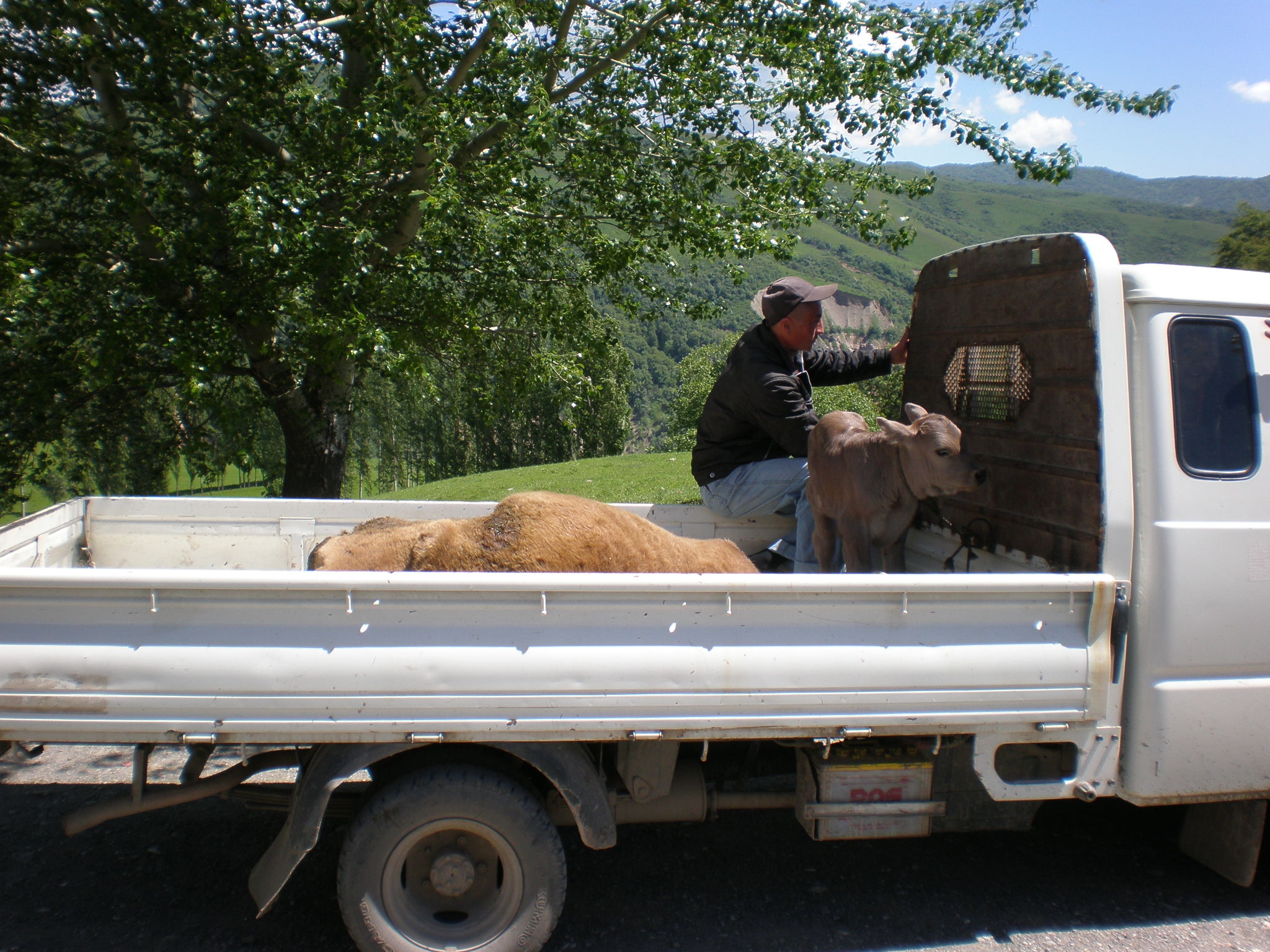 Kirgizisch veevervoer. --- Cattle transport Kyrgyzs style.