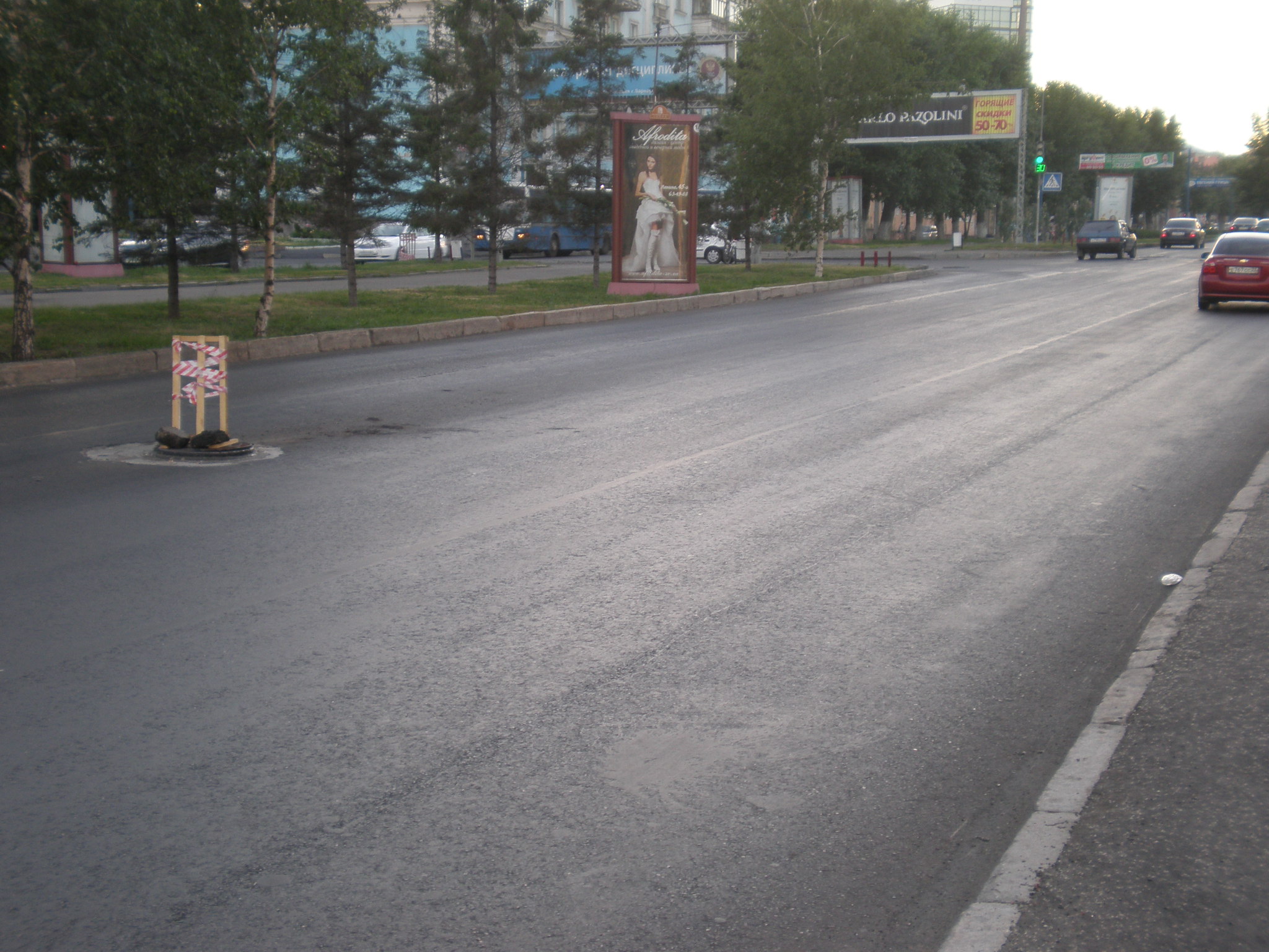 Waarschuwing voor gat in de weg Russische stijl. --- Caution, potholes.
